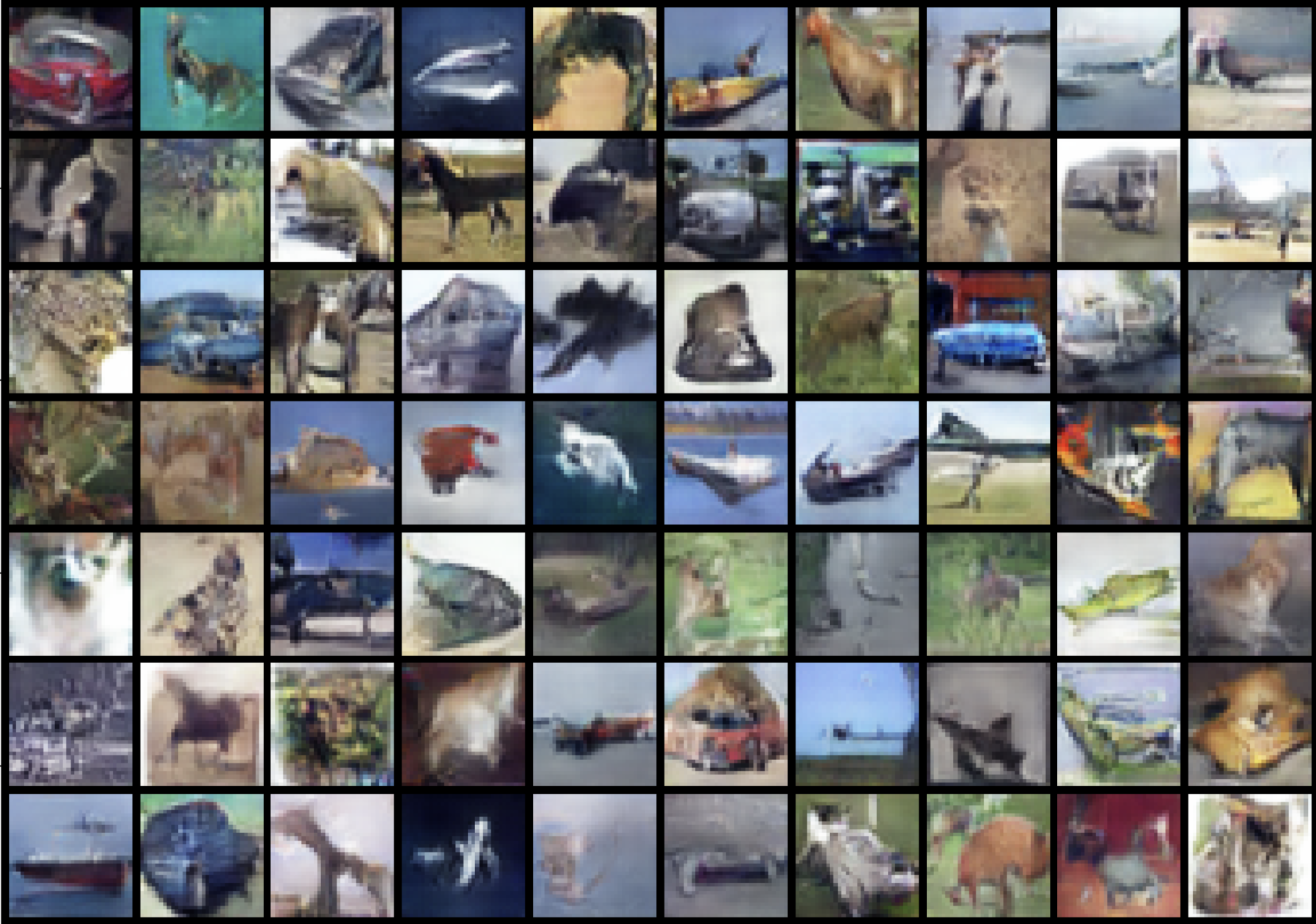 - Latent Space: Different latent space sizes were also explored, a size of 200 resulted in more diverse images, though with fewer discernable items; a size of 50 created less diverse and lower quality images, though with more distinction. Running the model with 75 seemed to capture the best of both worlds, producing images containing a larger array of diverse yet recognisable items.