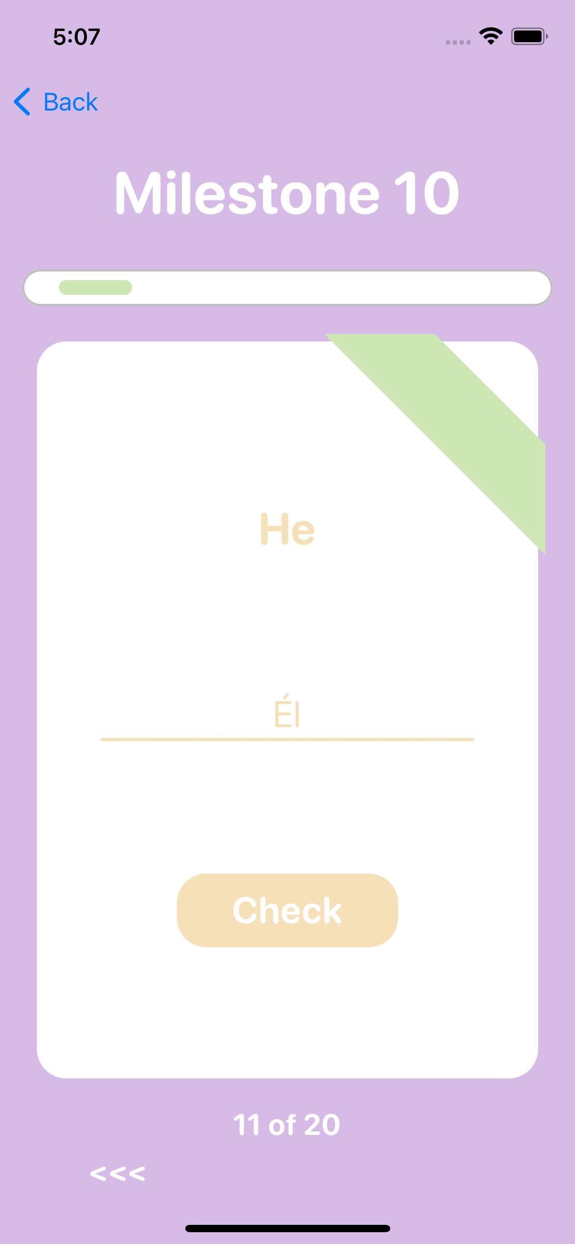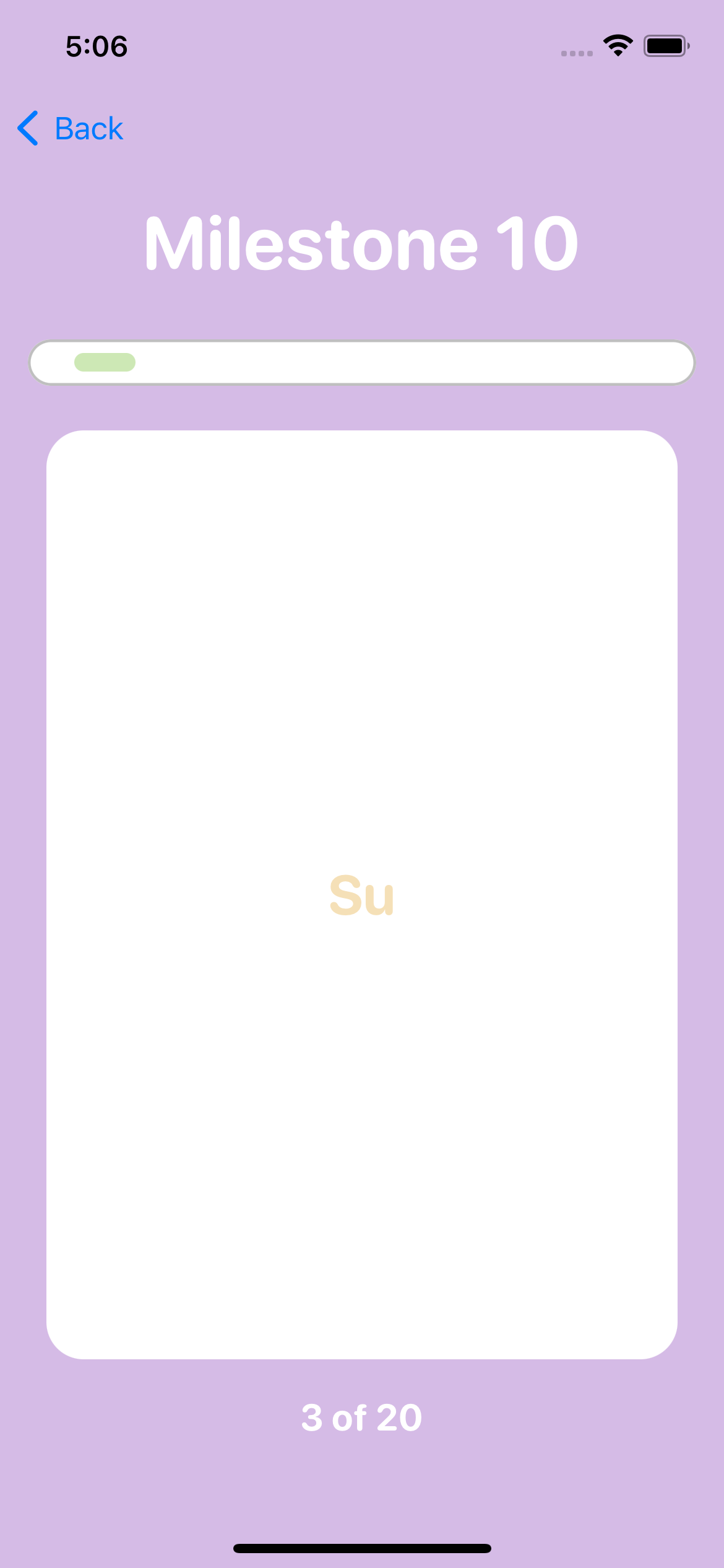 - Excessive Repetition: Splits a provided wordlist into multiple 'milestones'. Each 'milestone' contains 10 new words which are learned at the beginning through flashcards. The rest of the cards in the 'milestone' are translate tasks for every previously encountered word. When using a word list based on how common a specific word is, this results in more common words being repeated often - hopefully resulting in better memory achievements.